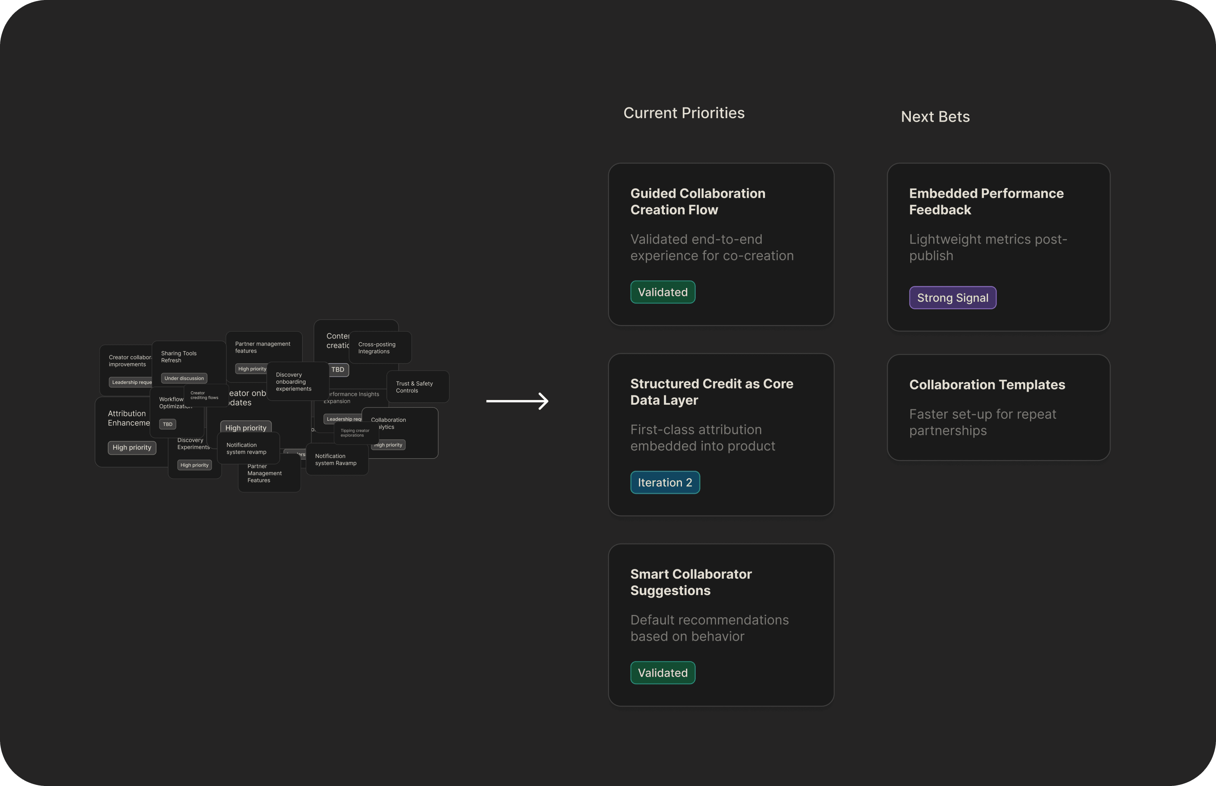 By embedding structured credit into everyday creation, the system increased visibility for historically under-credited creators, reduced attribution friction outside the product, and established a foundation for future discovery and monetization systems built on attribution.